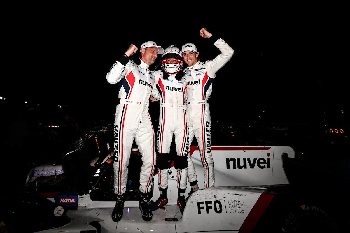 While there was tension among the two Penske Porsches, it was all smiles between the No. 2 United Autosports ORECA LMP2 07 and its No. 22 sister car, finishing one-two in LeMans Prototype 2 (LMP2). It was a second Sebring win for Mikkel Jensen but a first for co-drivers Hunter McElrea and Phil Fayer.