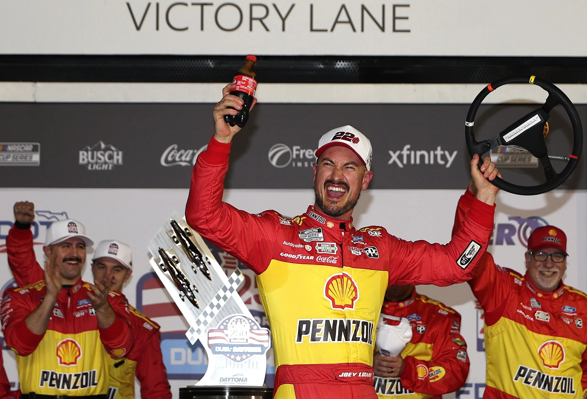 Those are the words of Joey Logano after the Team Penske driver put his No. 22 Pennzoil Shell Ford Mustang Dark Horse in Daytona International Speedway’s Victory Lane Thursday night in the first America 250 Florida Duel at DAYTONA race.